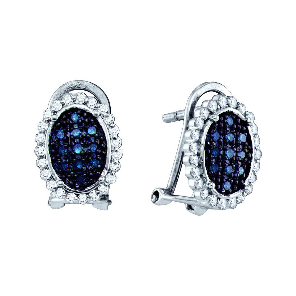 REF-27T9K ---- 0.33 CTW Blue Colored Diamond Oval French-clip Cluster Earrings 10K White Gold - SKU: GD65628