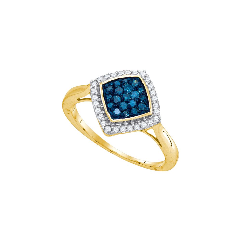 REF-25T8K ---- 0.33 CTW Blue Colored Diamond Square Cluster Ring 10K Yellow Gold - SKU: GD89361