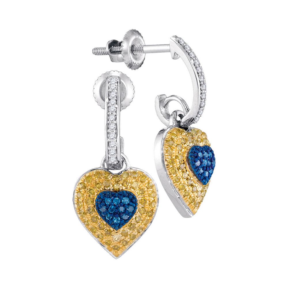 REF-34N4F- SKU: GD99324 ---- 0.33 CTW Blue Yellow Color Diamond Heart Dangle Earrings 10KT White Gold