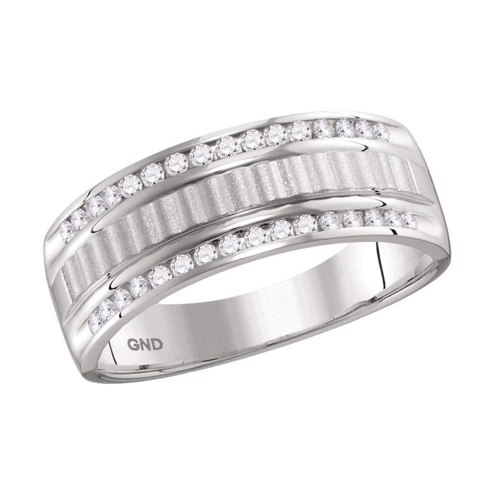 0.33 CTW Channel-set Diamond Textured Wedding Ring 14kt White Gold - SKU: GD116214