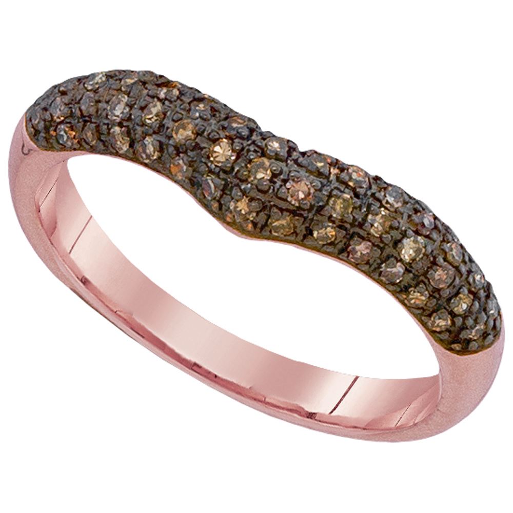 REF-26W9K- SKU: GD93976 ---- 0.33 CTW Cognac-brown Color Diamond Chevron Ring 10KT Rose Gold