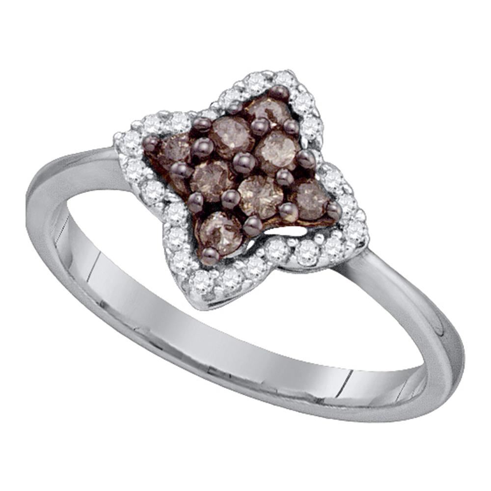 REF-22N4F- SKU: GD75255 ---- 0.33 CTW Cognac-brown Color Diamond Cluster Ring 10KT White Gold