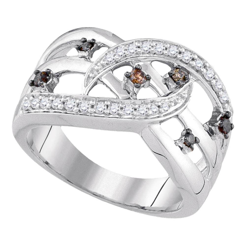 REF-37X5Y- SKU: GD90433 ---- 0.33 CTW Cognac-brown Color Diamond Openwork Crossover Strand Ring 10KT White Gold