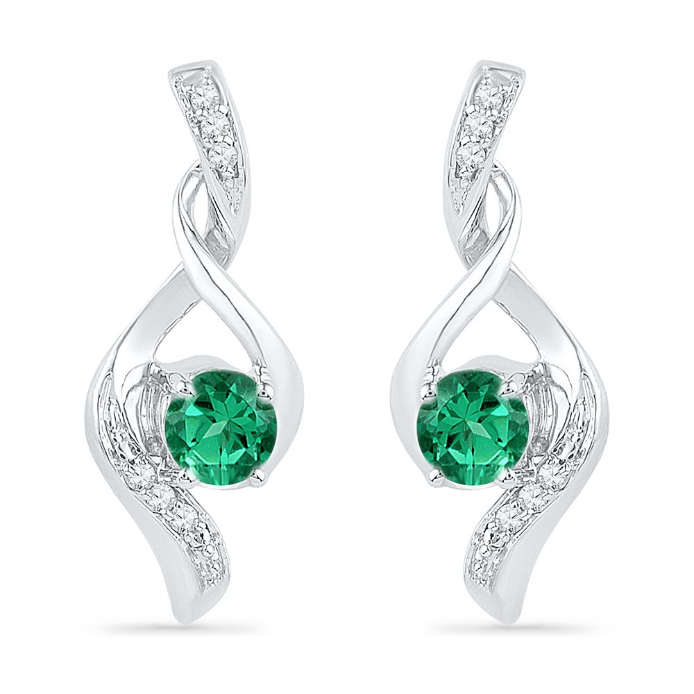 REF-14M9H- SKU: GD100681 ---- 0.33 CTW Created Emerald Solitaire Diamond Earrings 10KT White Gold