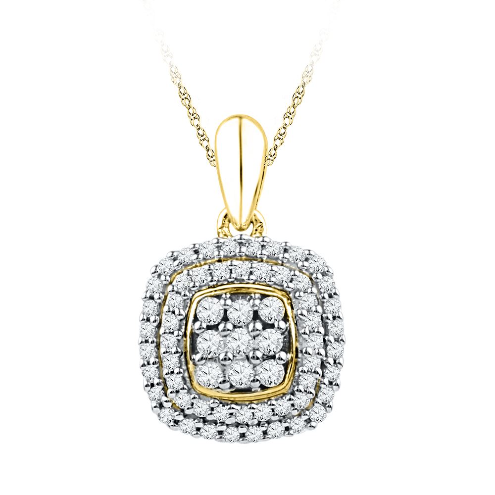 REF-22X4Y- SKU: GD97480 ---- 0.33 CTW Diamond Cluster Double Square Pendant 10KT Yellow Gold