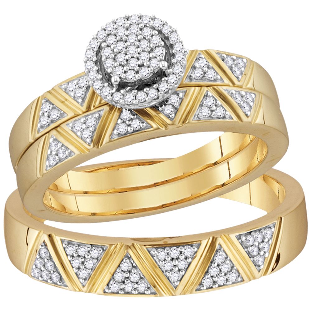 REF-48X7Y- SKU: GD110431 ---- 0.33 CTW Diamond Cluster His & Hers Matching Trio Ring 10KT Yellow Gold