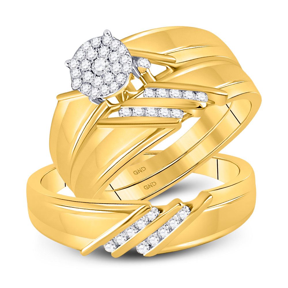 0.33 CTW Diamond Cluster Matching Bridal Wedding Ring 10kt Yellow Gold - SKU: GD130145