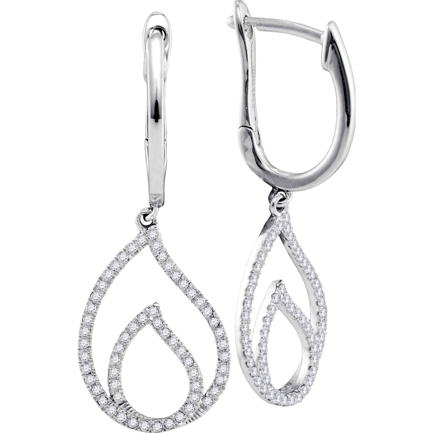 REF-36W2K- SKU: GD97871 ---- 0.33 CTW Diamond Double Nested Teardrop Dangle Earrings 10KT White Gold