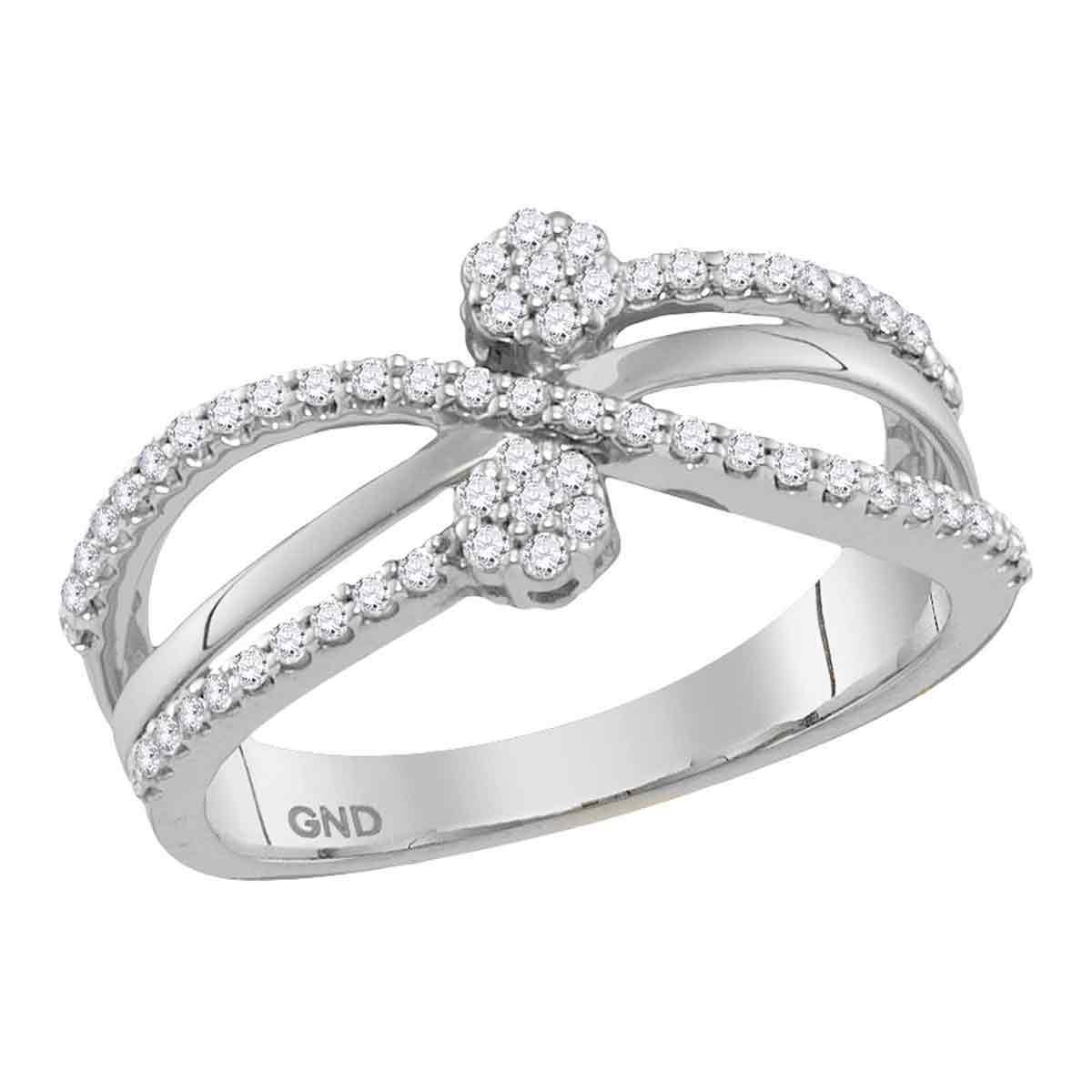 REF-33Y8X- SKU: GD115306 ---- 0.33 CTW Diamond Flower Cluster Crossover Ring 10KT White Gold