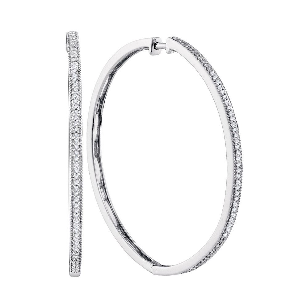 REF-49X5Y- SKU: GD97597 ---- 0.33 CTW Diamond Large Milgrain Hoop Earrings 10KT White Gold