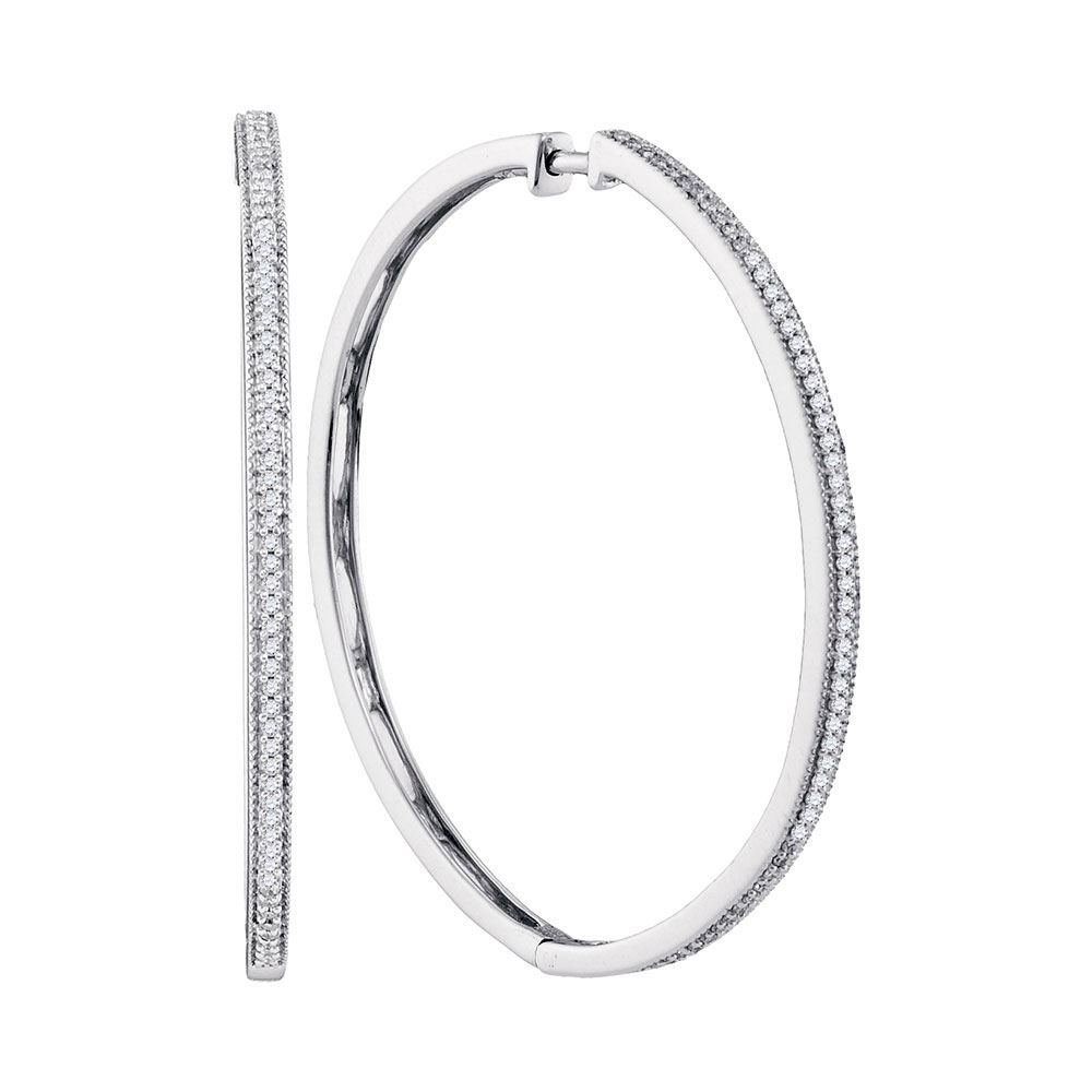 0.33 CTW Diamond Slender Large Milgrain Hoop Earrings 10kt White Gold - SKU: GD97597