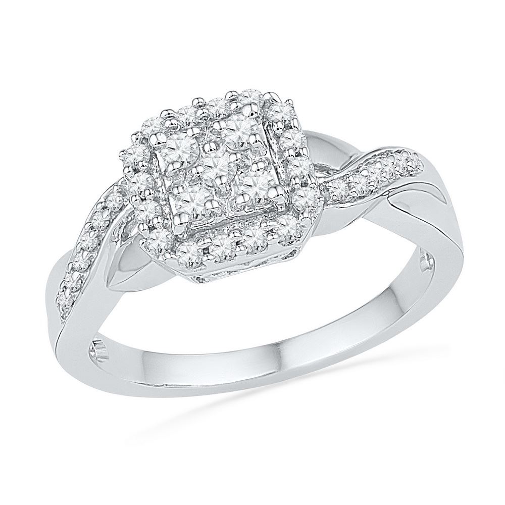 REF-37Y5X- SKU: GD101573 ---- 0.33 CTW Diamond Square Cluster Ring 10KT White Gold