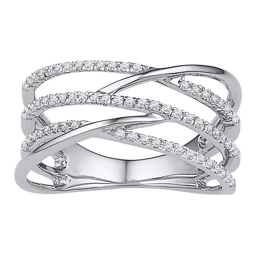 REF-30F2N- SKU: GD108833 ---- 0.33 CTW Diamond Triple Row Openwork Crossover Ring 10KT White Gold