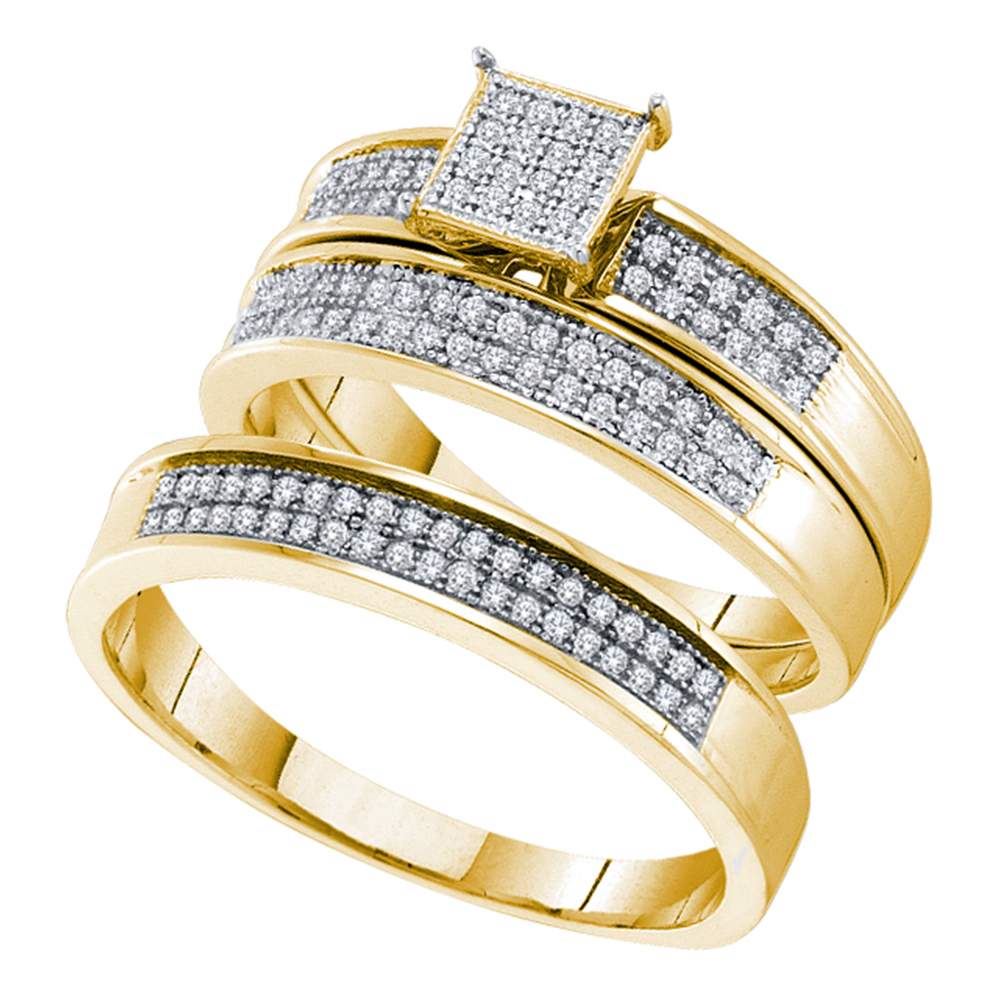 REF-49K5W- SKU: GD52642 ---- 0.33 CTW His & Hers Diamond Cluster Matching Bridal Ring 10KT Yellow Gold