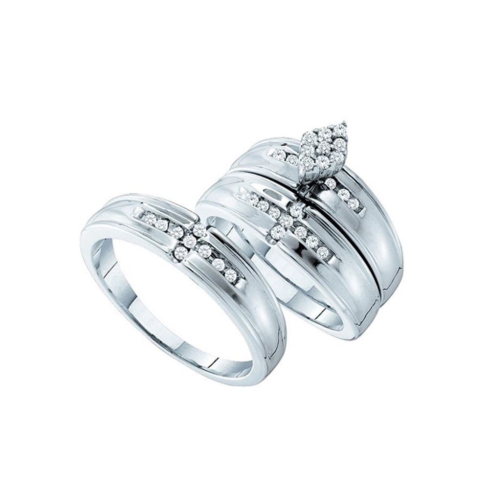 REF-99F9M ---- 0.33 CTW His & Hers Natural Diamond Cluster Matching Bridal Ring 14K White Gold - SKU: GD54170