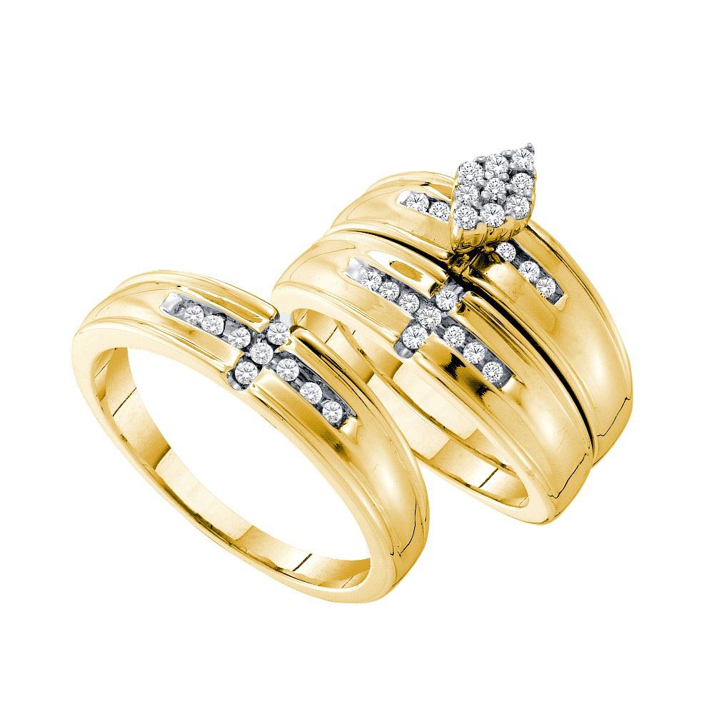 REF-99H9X ---- 0.33 CTW His & Hers Natural Diamond Cluster Matching Bridal Ring 14K Yellow Gold - SKU: GD54918