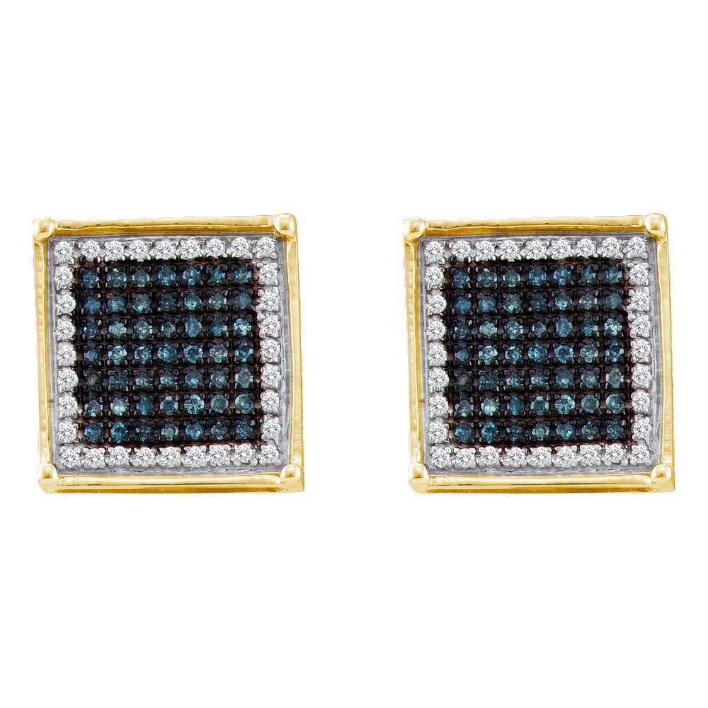 REF-18X2Y- SKU: GD55233 ---- 0.33 CTW Mens Blue Color Diamond Square Cluster Earrings 10KT Yellow Gold