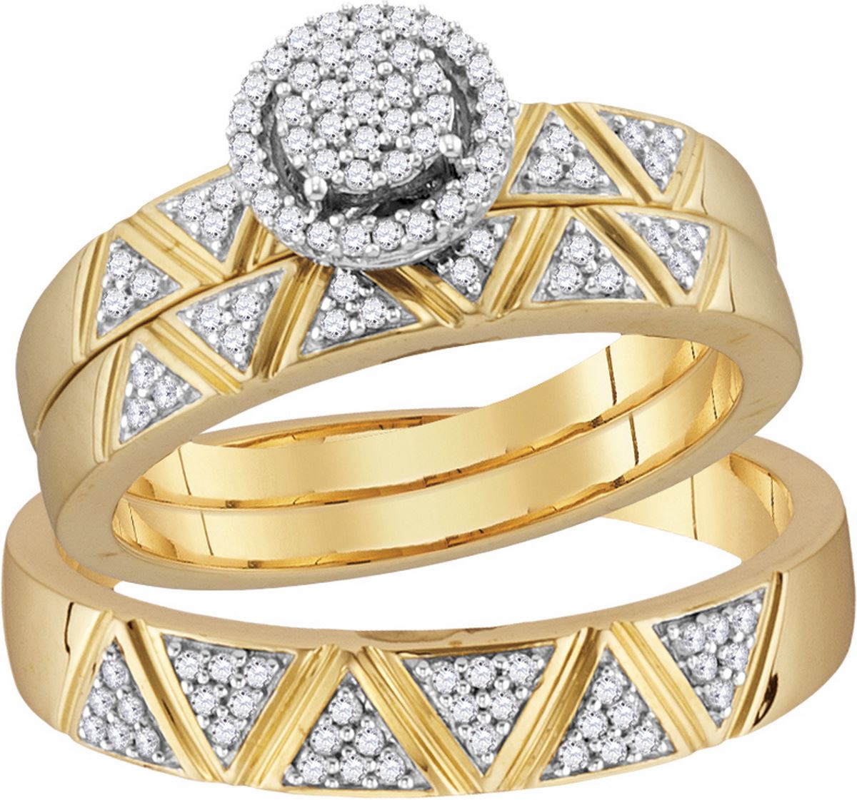 REF-59N8Y ---- 0.33 CTW Natural Diamond Cluster His & Hers Matching Trio Engagement Ring 10K Yellow Gold - SKU: GD110431
