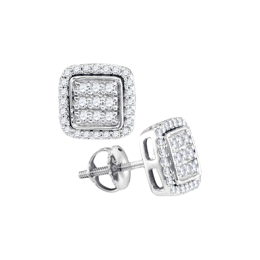 REF-35V9T ---- 0.33 CTW Natural Diamond Square Cluster Earrings 10K White Gold - SKU: GD95879