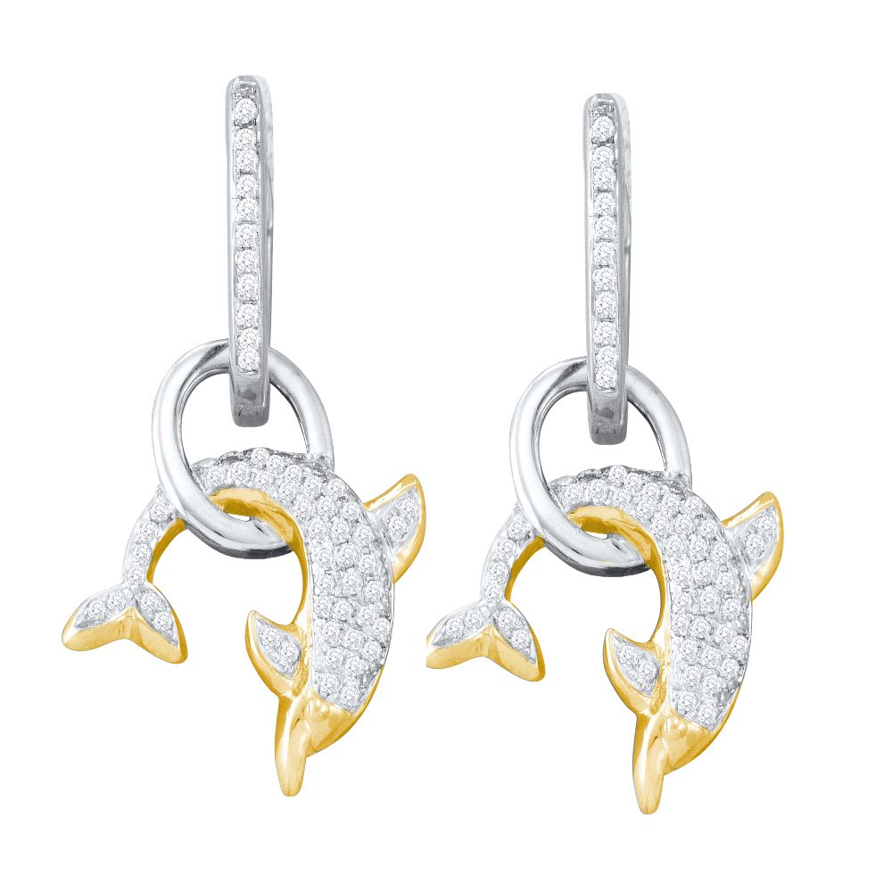 REF-53T9K ---- 0.33 CTW Pave-set Natural Diamond Dolphin Nautical Dangle Earrings 10K Multi-Tone Gold - SKU: GD55929