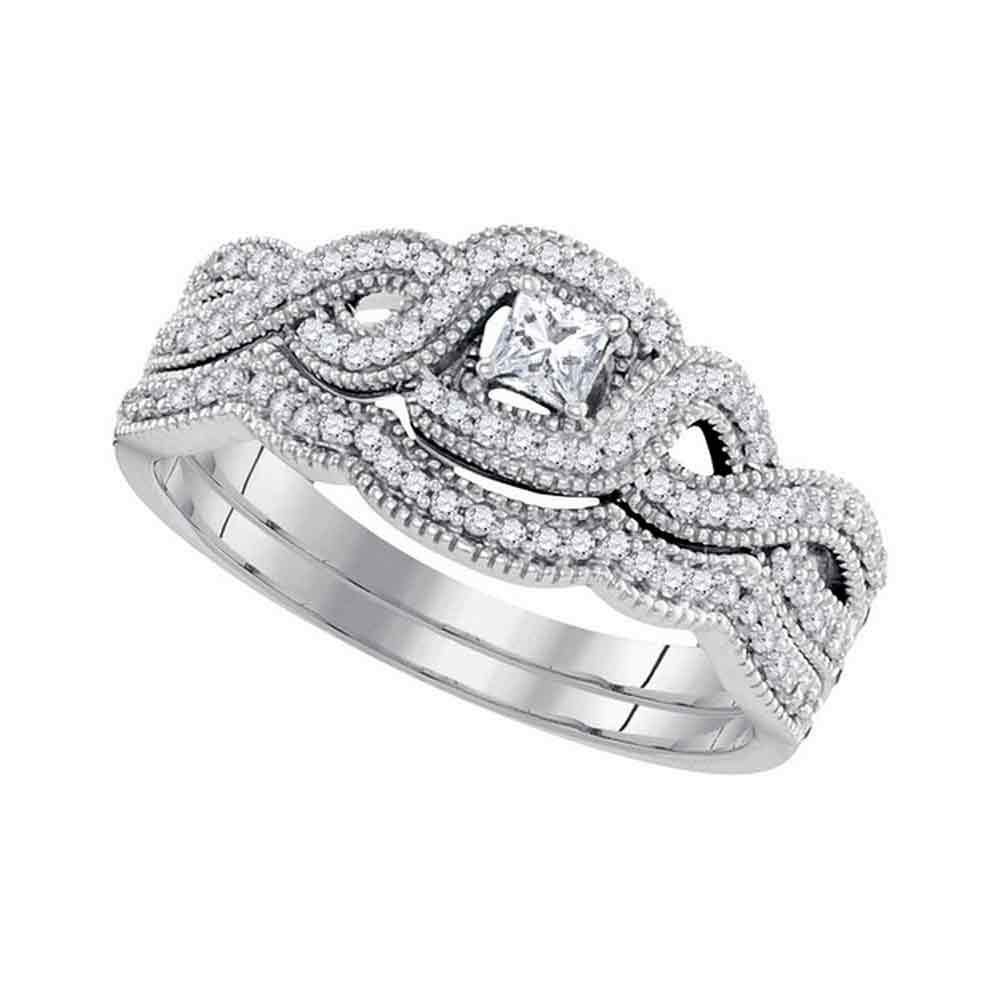 REF-49K5W- SKU: GD98606 ---- 0.33 CTW Princess Diamond Woven Crossover Bridal Ring 10KT White Gold