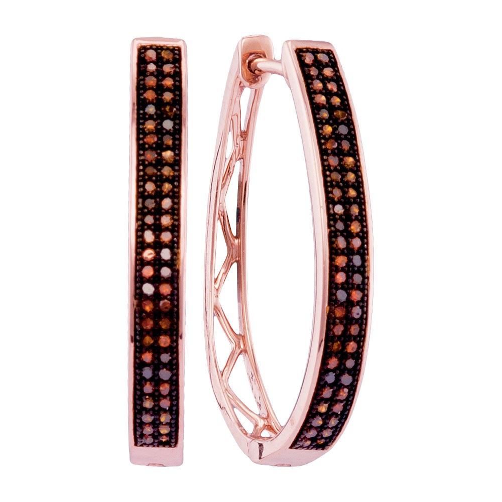 REF-37K5W- SKU: GD97609 ---- 0.33 CTW Red Color Diamond Double Row Hoop Earrings 10KT Rose Gold