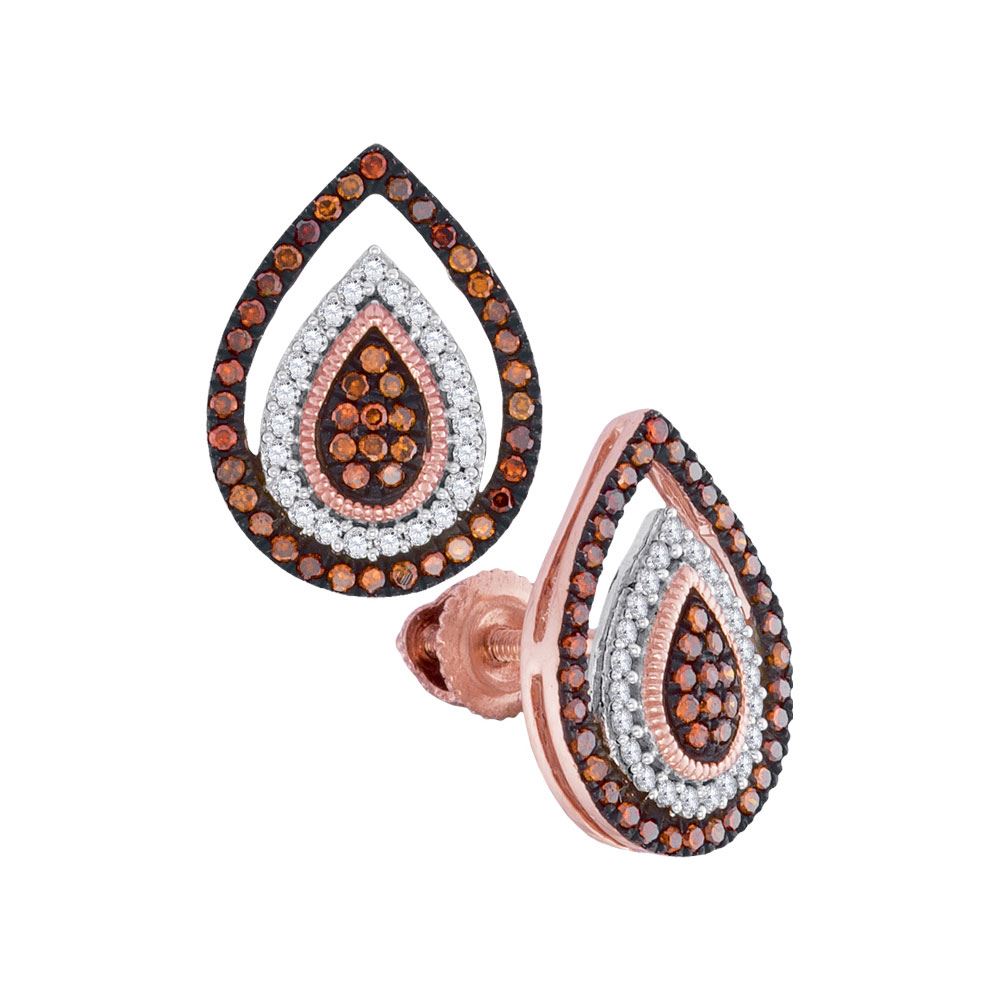 REF-37Y5X- SKU: GD98456 ---- 0.33 CTW Red Color Diamond Framed Teardrop Cluster Earrings 10KT Rose Gold