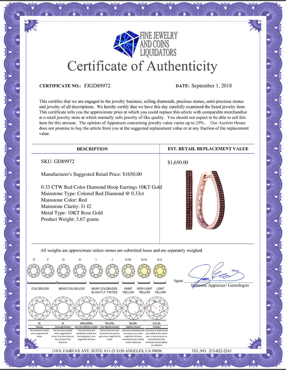 REF-41F9N- SKU: GD89972 ---- 0.33 CTW Red Color Diamond Hoop Earrings 10KT Rose Gold