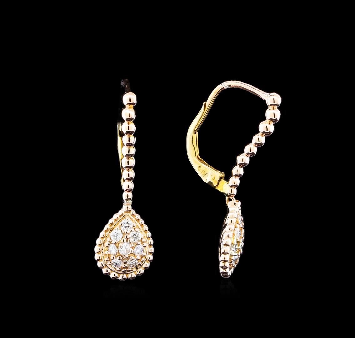 One pair of earrings featuring: 14KT rose gold weighing 3.38 grams containing diamonds weighing 0.33ctw.