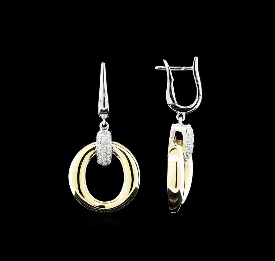 One pair of earrings featuring: 14KT yellow and white gold weighing 7.00 grams containing diamonds weighing 0.33ctw.
