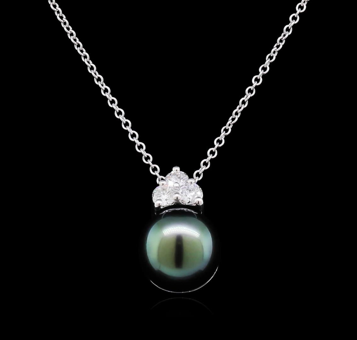 One pendant featuring: 14KT white gold weighing 1.50 grams containing one pearl and side diamonds with a total weight of 0.33ct.