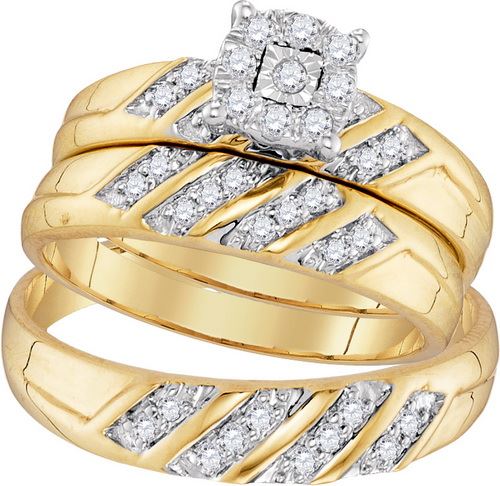 REF-38H9Y ---- 0.33CT Diamond Trio Set 10KT Ring Yellow Gold - SKU: GD 96732