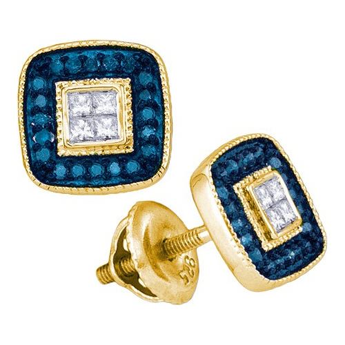 REF-26Y9W ---- 0.33CTW White and Blue Diamond Micro-Pave 10KT Earrings Yellow Gold - SKU: GD 88975