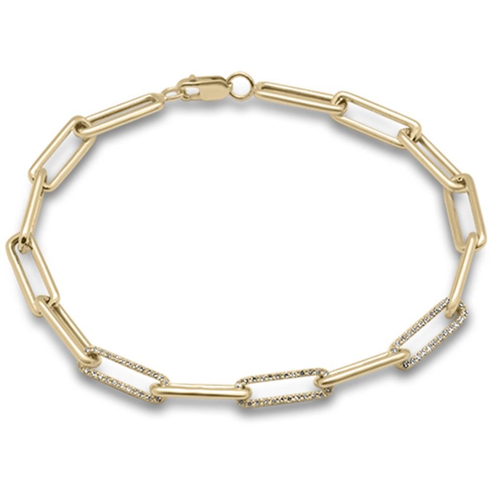 0.33ct 14K Yellow Gold 5.66gm Diamond Paperclip Bracelet 7" Long