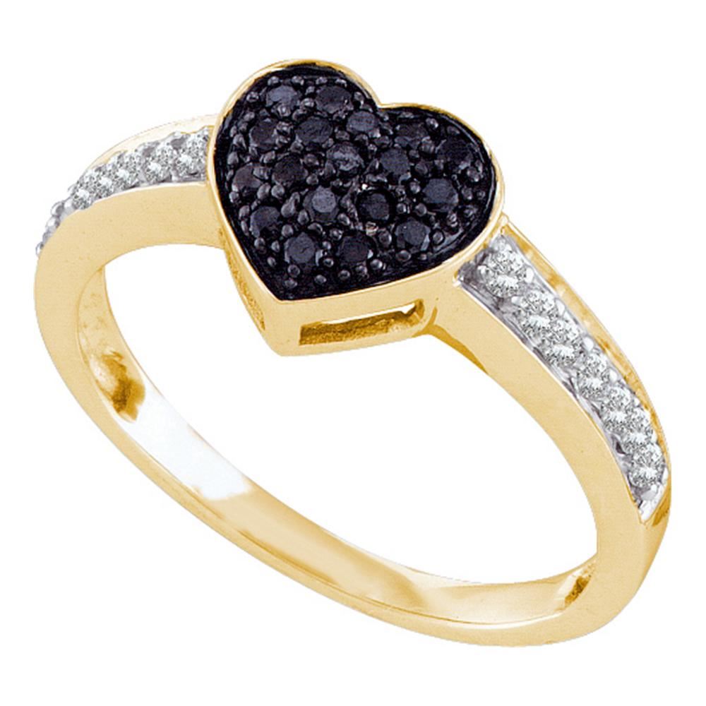REF-25Y4X- SKU: GD60460 ---- 0.34 CTW Black Color Diamond Heart Cluster Ring 10KT Yellow Gold