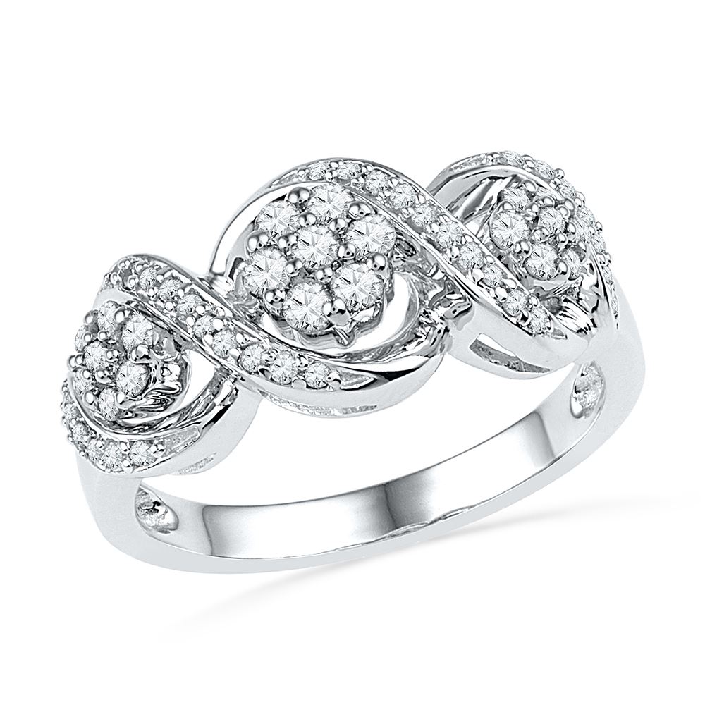 REF-36M2H- SKU: GD100864 ---- 0.34 CTW Diamond Triple Flower Cluster Ring 10KT White Gold