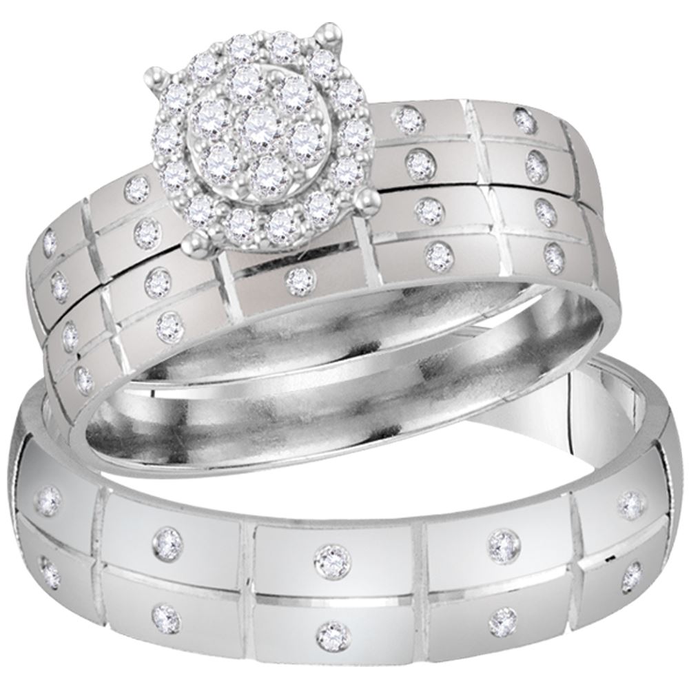 REF-75Y2X- SKU: GD113867 ---- 0.34 CTW His & Hers Diamond Cluster Matching Bridal Ring 14KT White Gold
