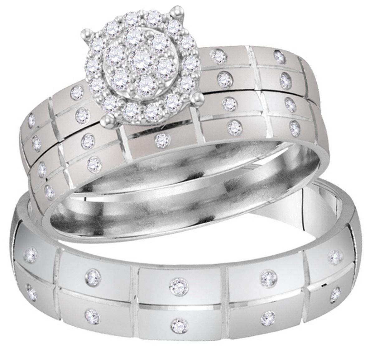 REF-99H9X ---- 0.34 CTW His & Hers Natural Diamond Cluster Matching Bridal Ring 14K White Gold - SKU: GD113867