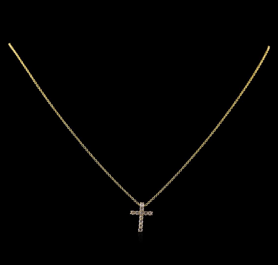 One cross pendant with chain featuring: 14KT yellow gold weighing 1.77 grams containing diamonds weighing 0.34ctw.