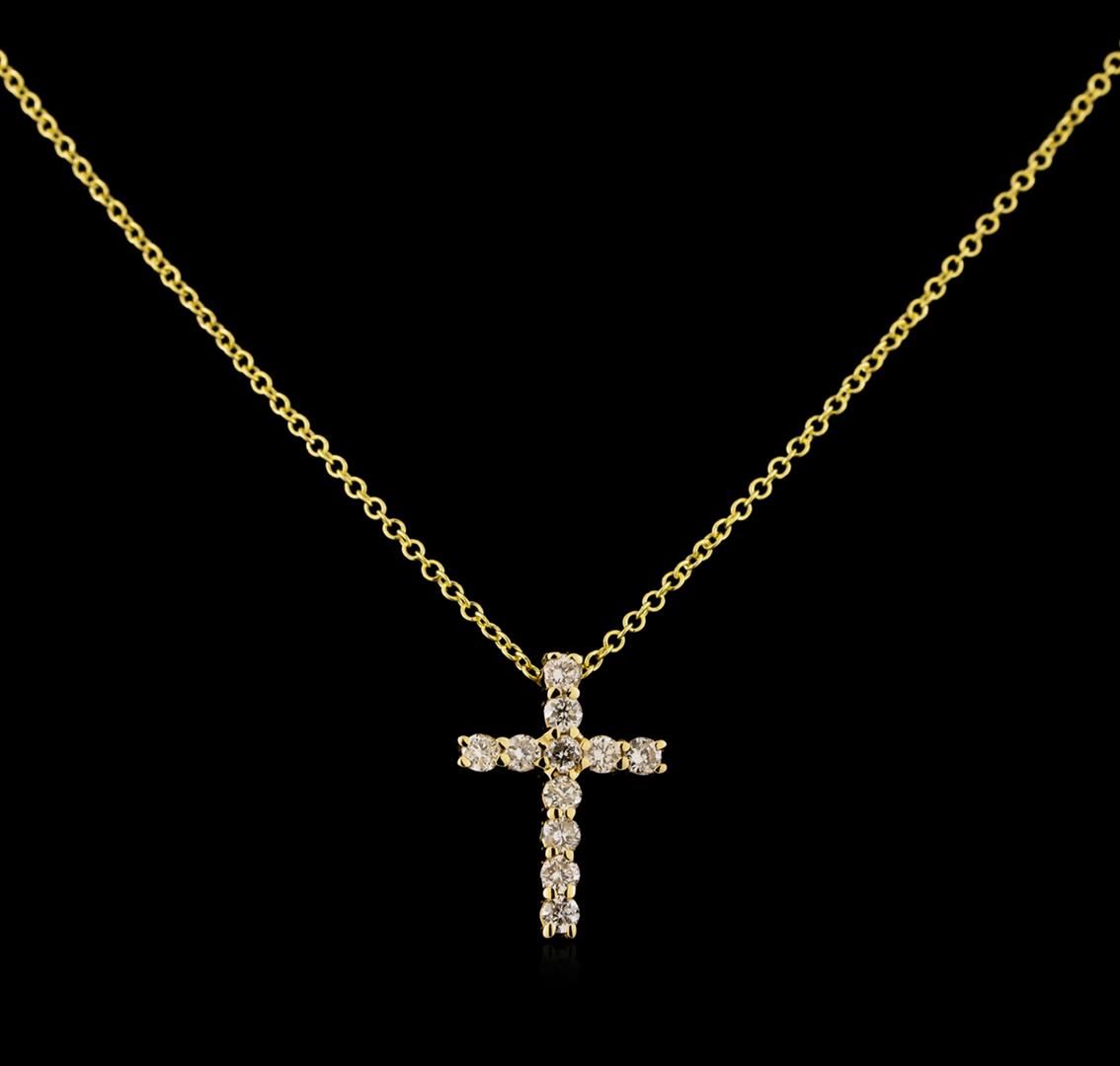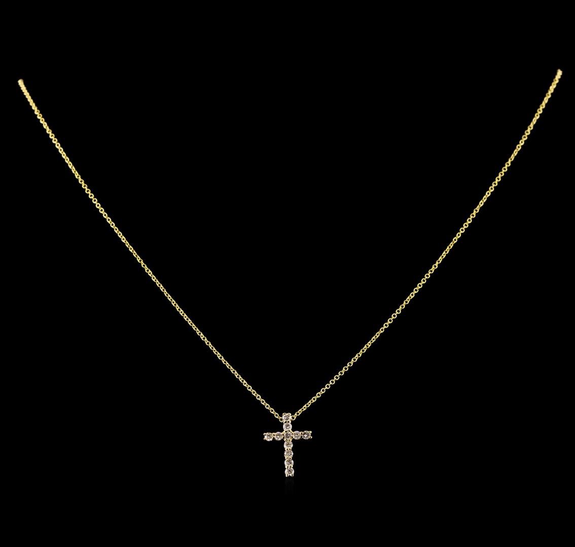 One cross pendant with chain featuring: 14KT yellow gold weighing 1.82 grams containing diamonds weighing 0.34ctw.