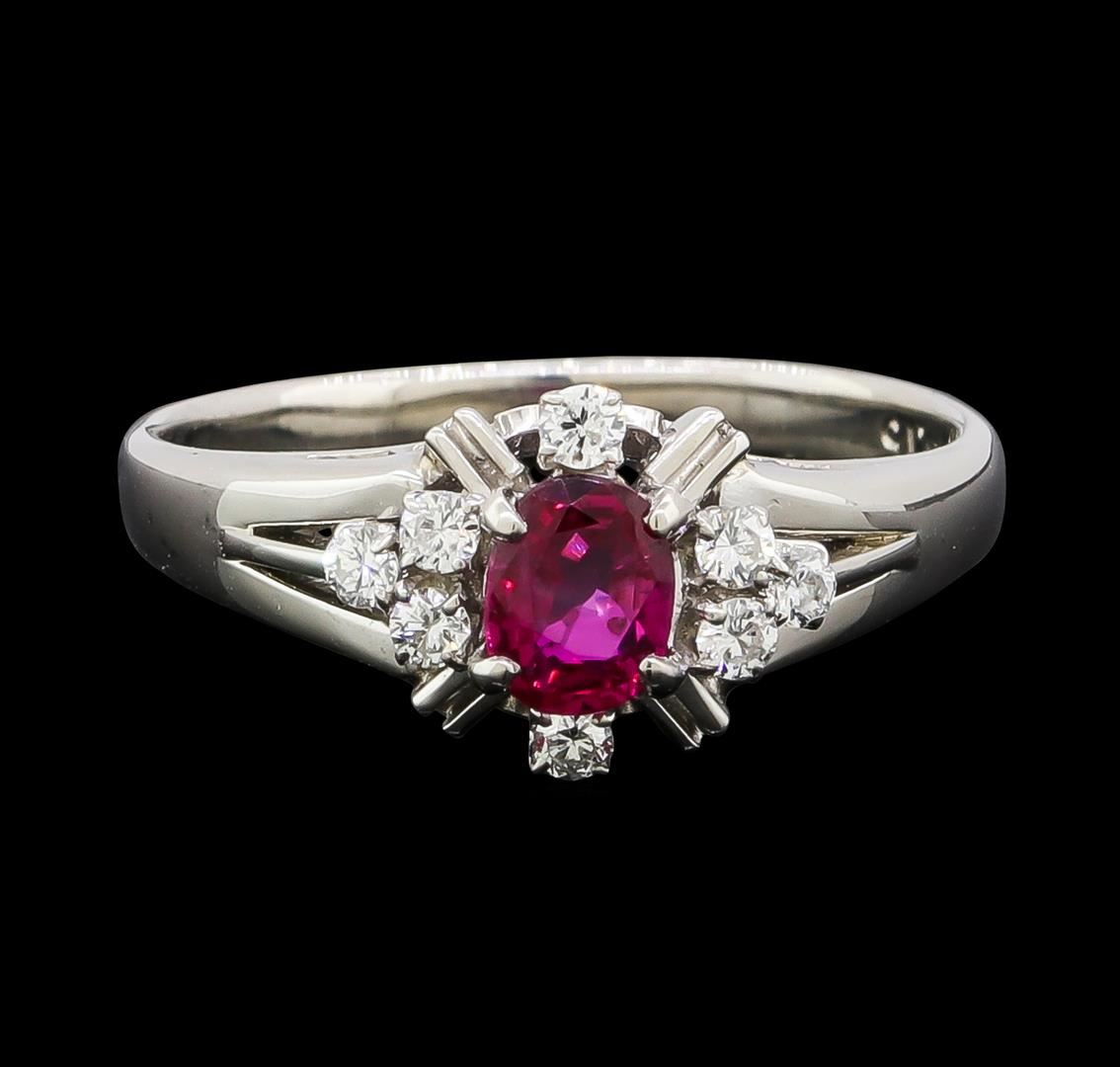 One ring featuring: Platinum containing Ruby with a total weight of 0.34ct and Diamonds with a total weight of 0.15ct. Total Weight of Ring: 4.1 grams.
