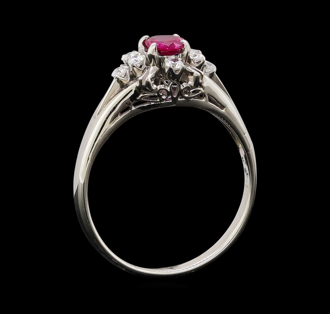 One ring featuring: Platinum containing Ruby with a total weight of 0.34ct and Diamonds with a total weight of 0.15ct. Total Weight of Ring: 4.1 grams.