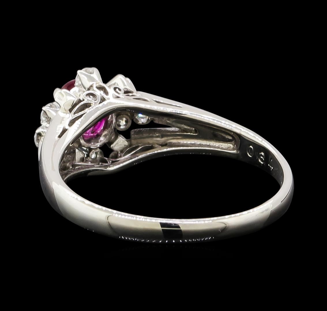 One ring featuring: Platinum containing Ruby with a total weight of 0.34ct and Diamonds with a total weight of 0.15ct. Total Weight of Ring: 4.1 grams.