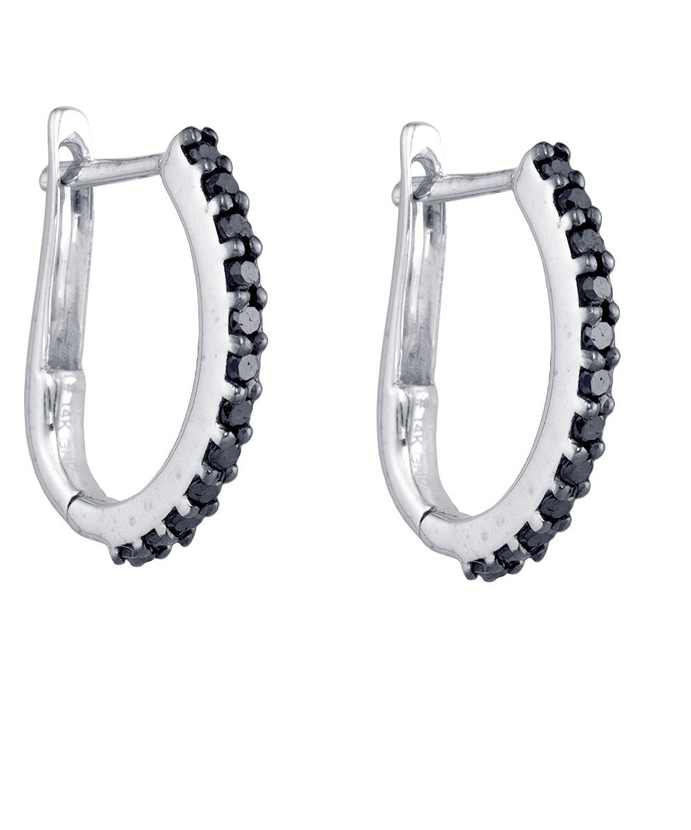 REF-29H9X ---- 0.35 CTW Black Colored Diamond Slender Oblong Hoop Earrings 14K White Gold - SKU: GD61822