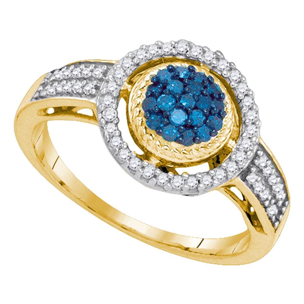 REF-25F4N- SKU: GD87318 ---- 0.35 CTW Blue Color Diamond Circle Cluster Ring 10KT Yellow Gold