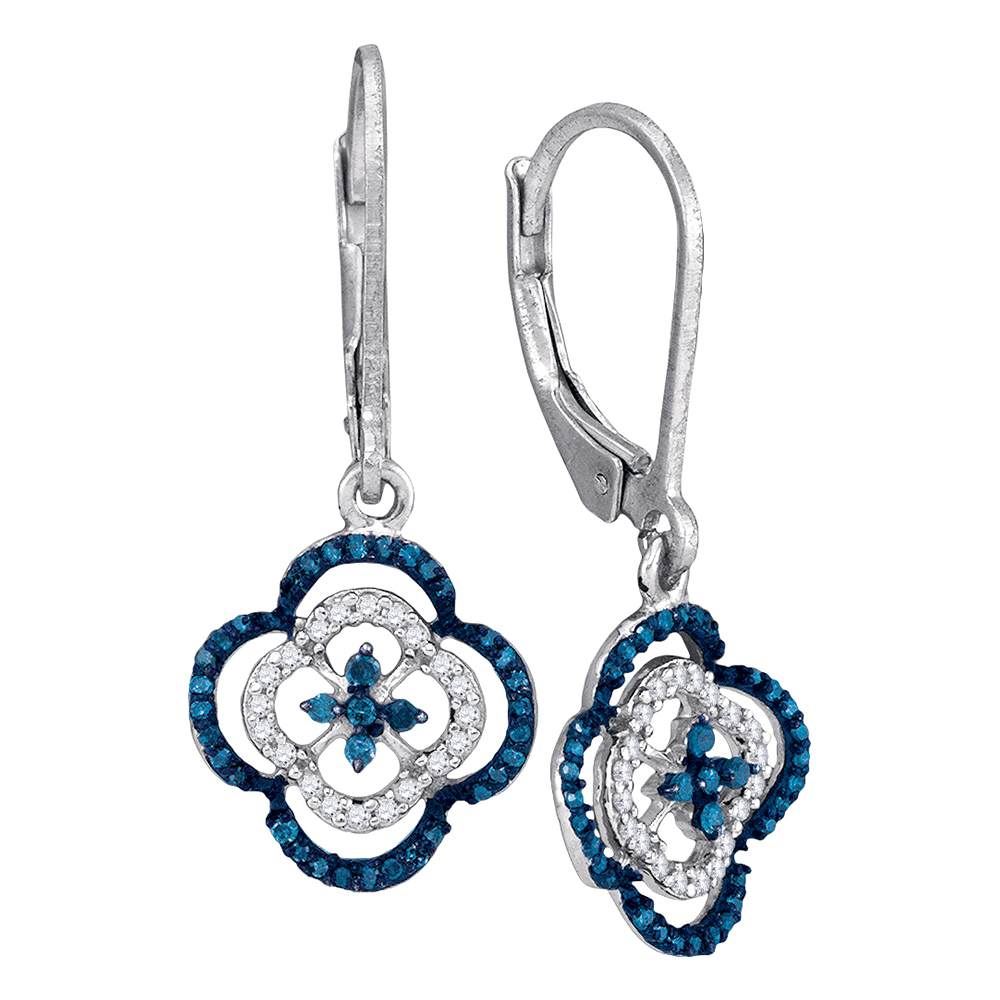 REF-22W4K- SKU: GD88914 ---- 0.35 CTW Blue Color Diamond Dangle Earrings 10KT White Gold