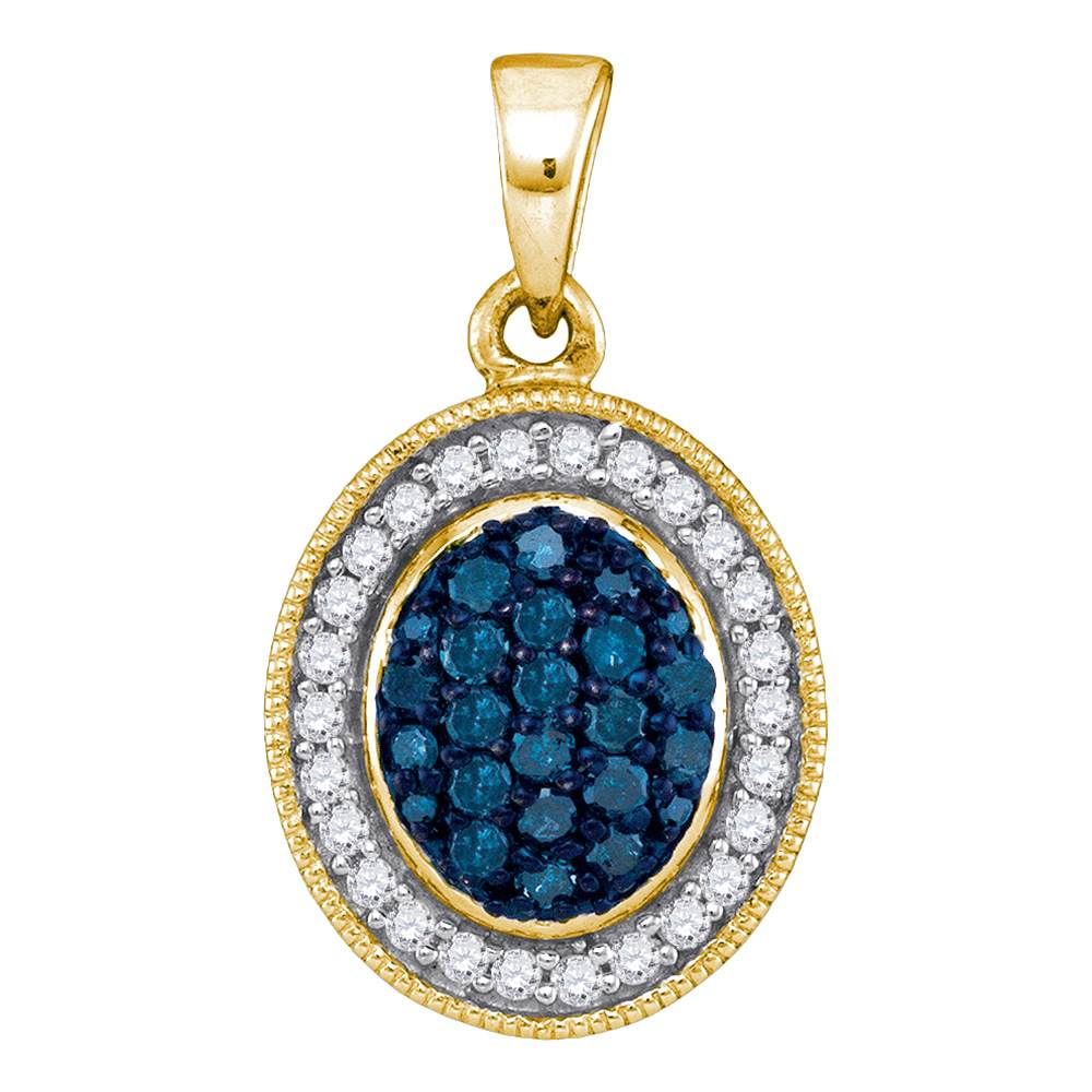 REF-19F4N- SKU: GD89107 ---- 0.35 CTW Blue Color Diamond Oval Cluster Pendant 10KT Yellow Gold