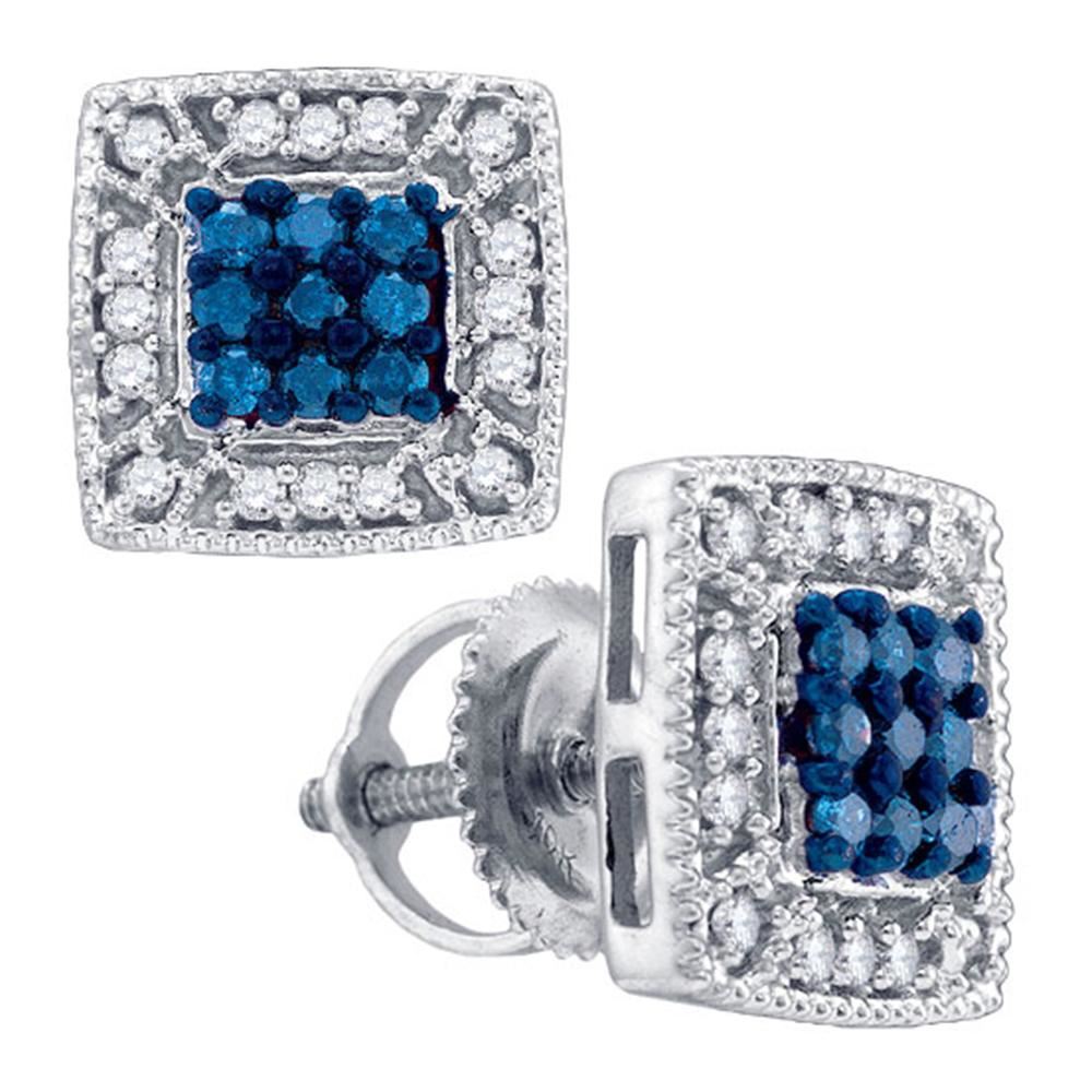 REF-26X9Y- SKU: GD83521 ---- 0.35 CTW Blue Color Diamond Square Cluster Earrings 10KT White Gold