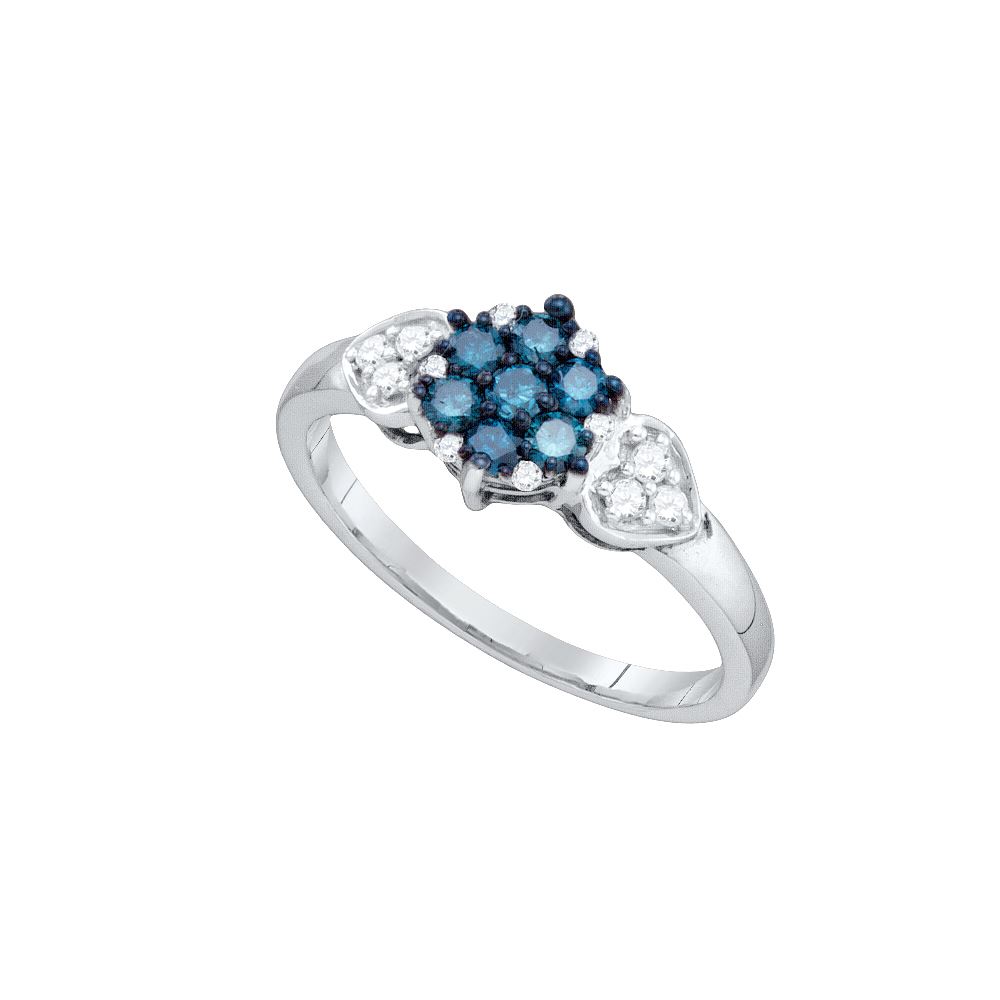 REF-29T9K ---- 0.35 CTW Blue Colored Diamond Cluster Ring 10K White Gold - SKU: GD75243