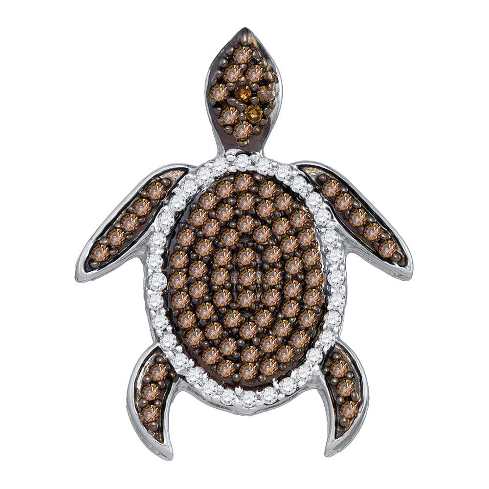 REF-19X4Y- SKU: GD81815 ---- 0.35 CTW Cognac-brown Color Diamond Sea Turtle Tortoise Pendant 10KT Yellow Gold